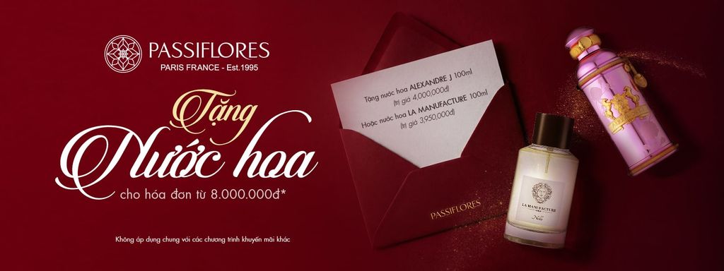 Với sứ mệnh mang đến những trải nghiệm hương thơm chuẩn Pháp, Passiflores muốn trao gửi đến tất cả khách hàng những tuyệt tác nước hoa niche Alexandre.J và La Manufacture như một lời tri ân tinh tế dành riêng cho giới mộ điệu hương thơm. Thông qua chương trình tri ân tặng nước hoa cao cấp cho khách hàng sở hữu hóa đơn từ 8 triệu. Đây là cơ hội để bạn vừa khám phá thế giới nước hoa nghệ thuật, vừa nhận về một món quà đậm dấu ấn sang trọng.