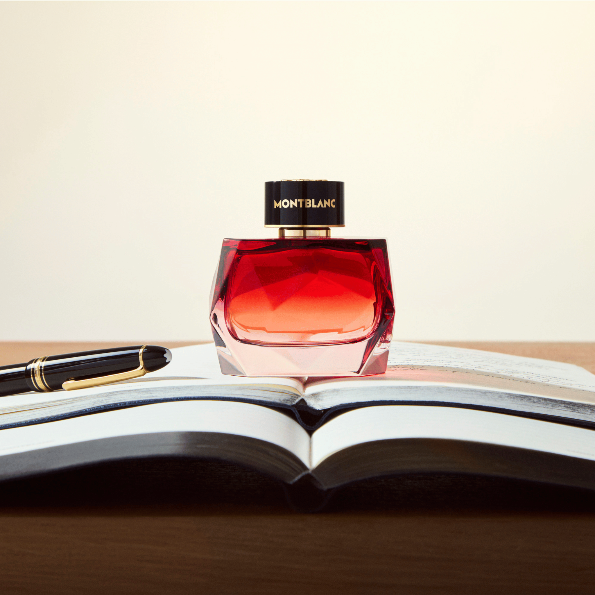 Montblanc Elixir EDP có thiết kế thủy tinh đỏ chuyển sắc và đa giác. Chai nước hoa được trang trí bằng nắp đen và biểu tượng ngôi sao sáu cánh Emblem vàng - những chi tiết mang dấu ấn nhận diện của nhà mốt Montblanc.