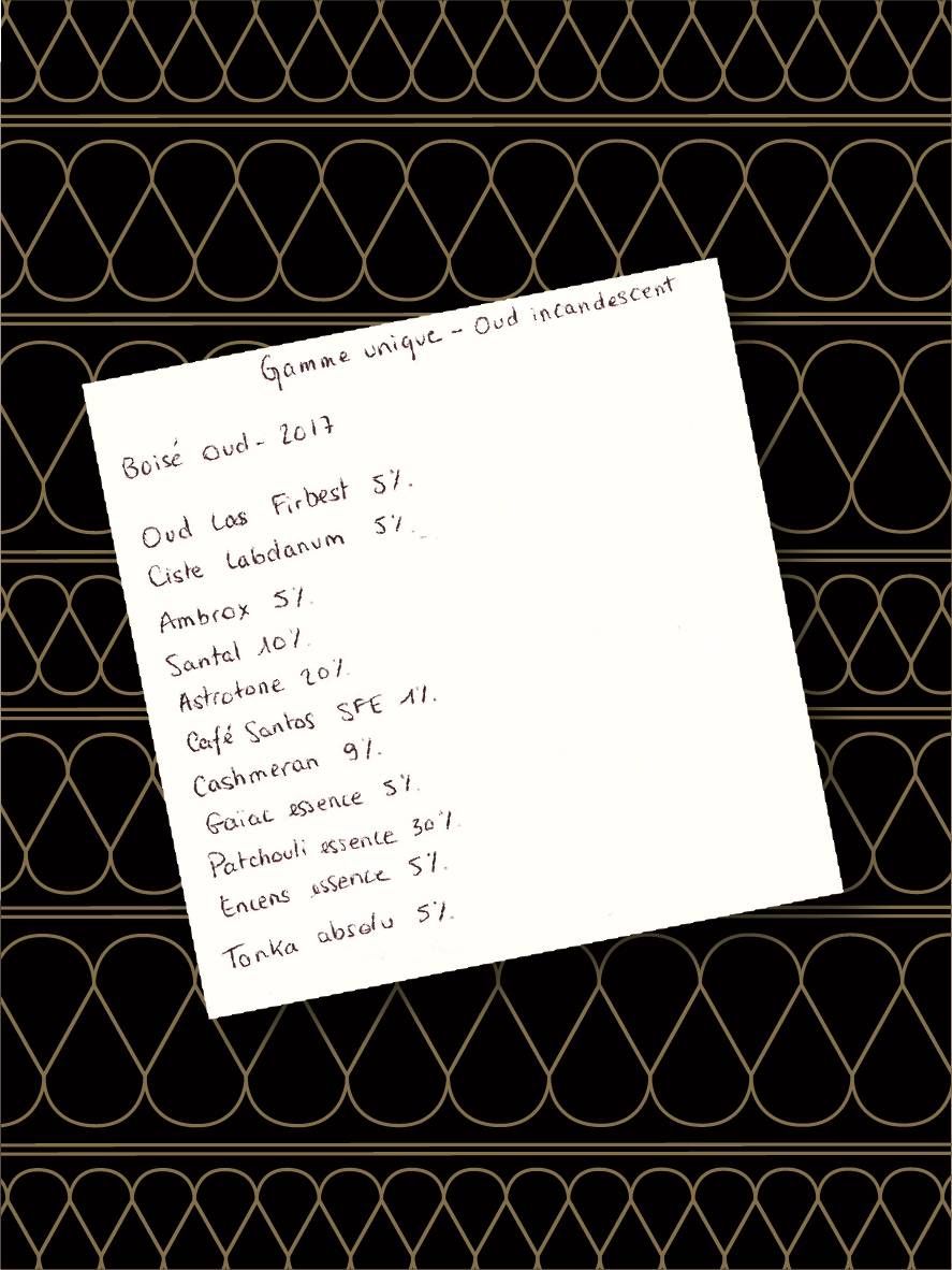 Aurélien Guichard muốn thể hiện một khái niệm về sắc tối và bí ẩn mới bằng cách kết hợp espresso với một thành phần hương đa diện: Trầm hương.