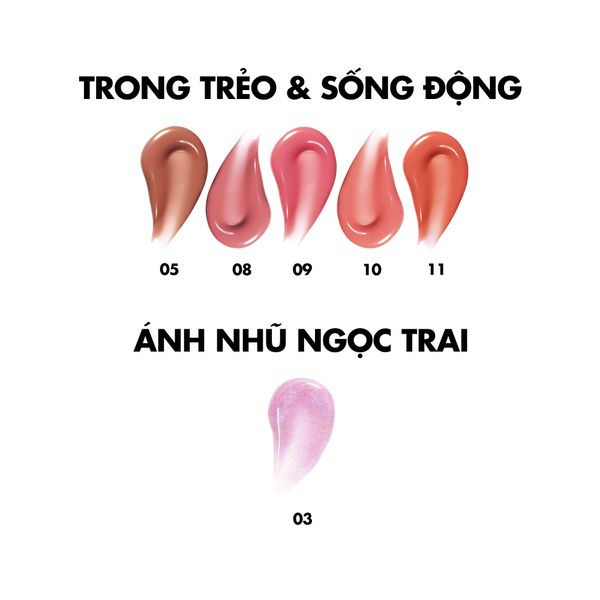 Có 6 tông màu, bao gồm 1 màu ánh nhũ và 5 màu căng mọng.